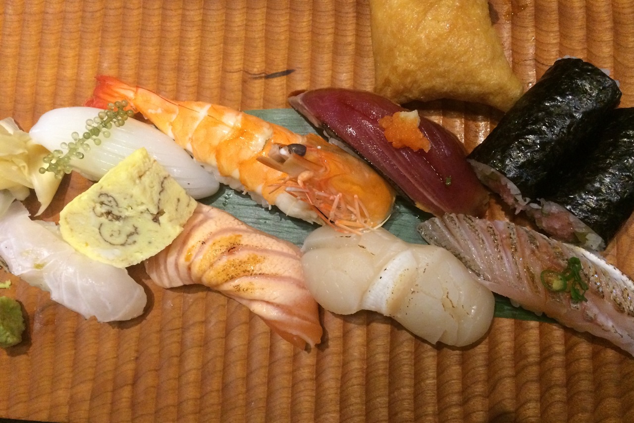 基隆港のそばを走っている通りです。バス、バイク、車など交通量は多いです。港側じゃないほうは、住宅やビルが建っていました。ビルの1階に海鮮のレストランがあったので、お刺身とお寿司を食べました。新鮮で、おいしかったです