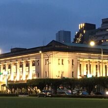 夕方に訪問しようとしたが、博物館を閉館時間まで見ていたので、すでにライトアップされていました。遠目にみた景色で、全ての柱がライトアップされた景色のほうが近くで見るよりも綺麗でした。観光スポットではなく、普通の銀行業務をしています