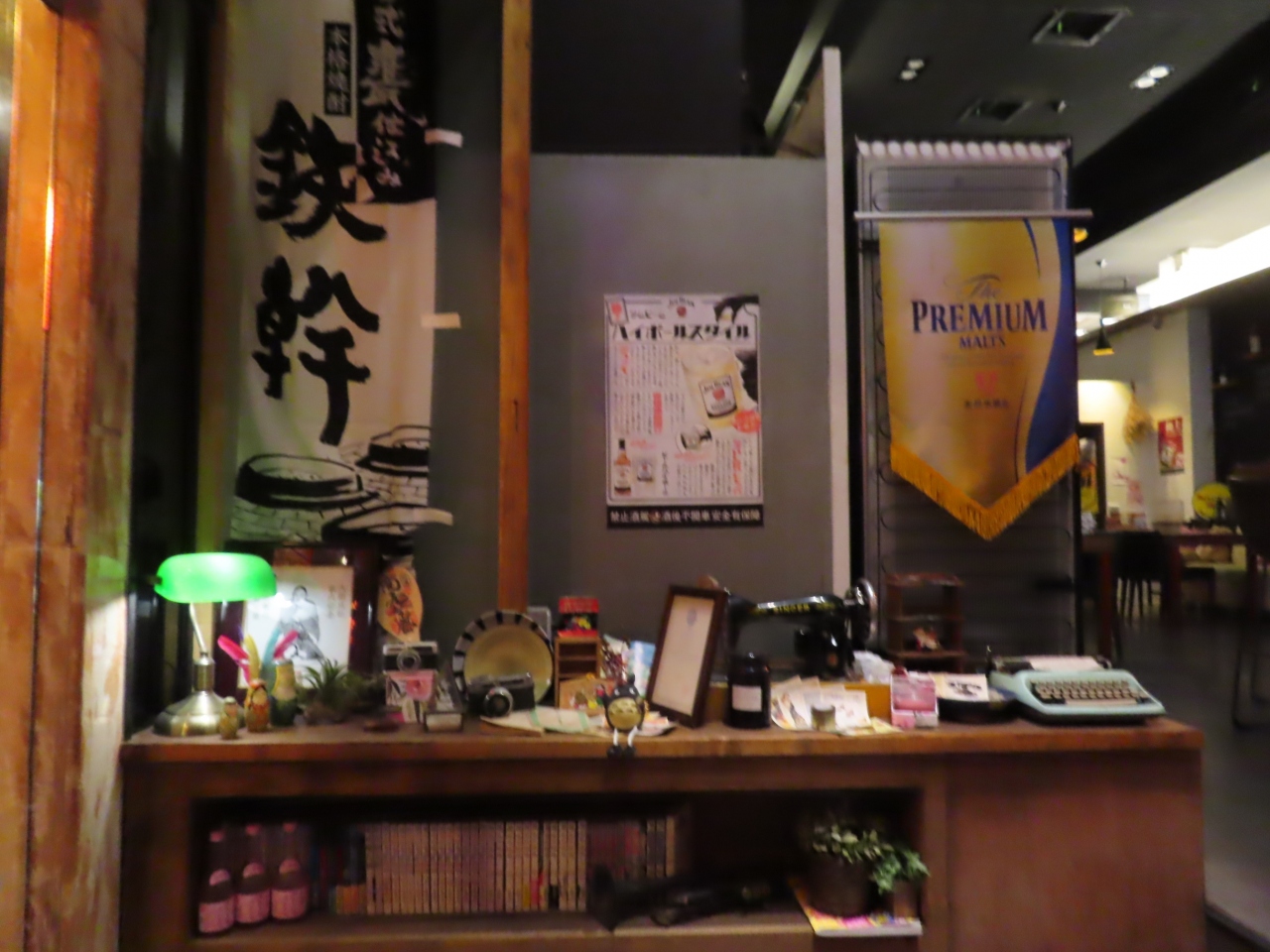 友人夫婦、妻と6人で本格的な日本風居酒屋へ行きました。妻と友人夫人が行った時に美味しかったのでここで飲むことにしました。パブだったお店を居酒屋にしたので、店内はパブの雰囲気と居酒屋の雰囲気はミックスした佇まいでした。店内には、日本のレトロなものが置かれていました。