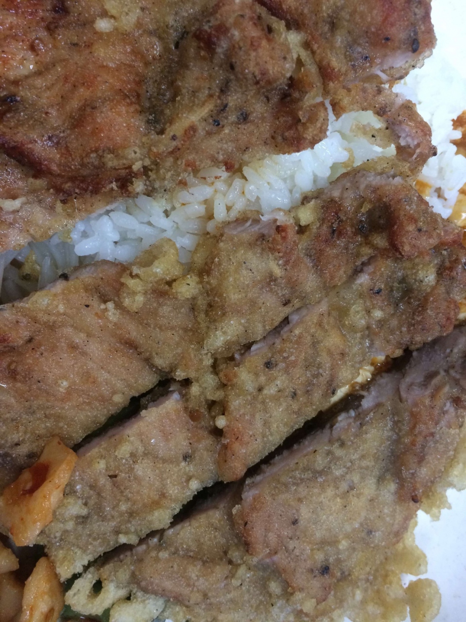 副菜でついていたもやし炒めニンニクが効いていて美味しかったです。スープはイートインの人は、飲み放題でした。自分で大きな鍋からよそって飲めました。豚骨スープで、無駄なく食材をつかっているのがいいなと思いました。