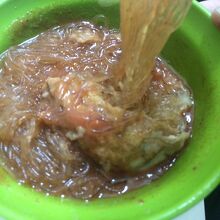 坂道のところにあり、斜め向かいに釜で焼くピザ屋さんがありました。外から見ると、同じ建物ではなさそうに見えるんですが、実はイートインのスペースが隣に併設されていて、階段を降りていく隣の場所でした。熱々で、フーフーしながら食べました