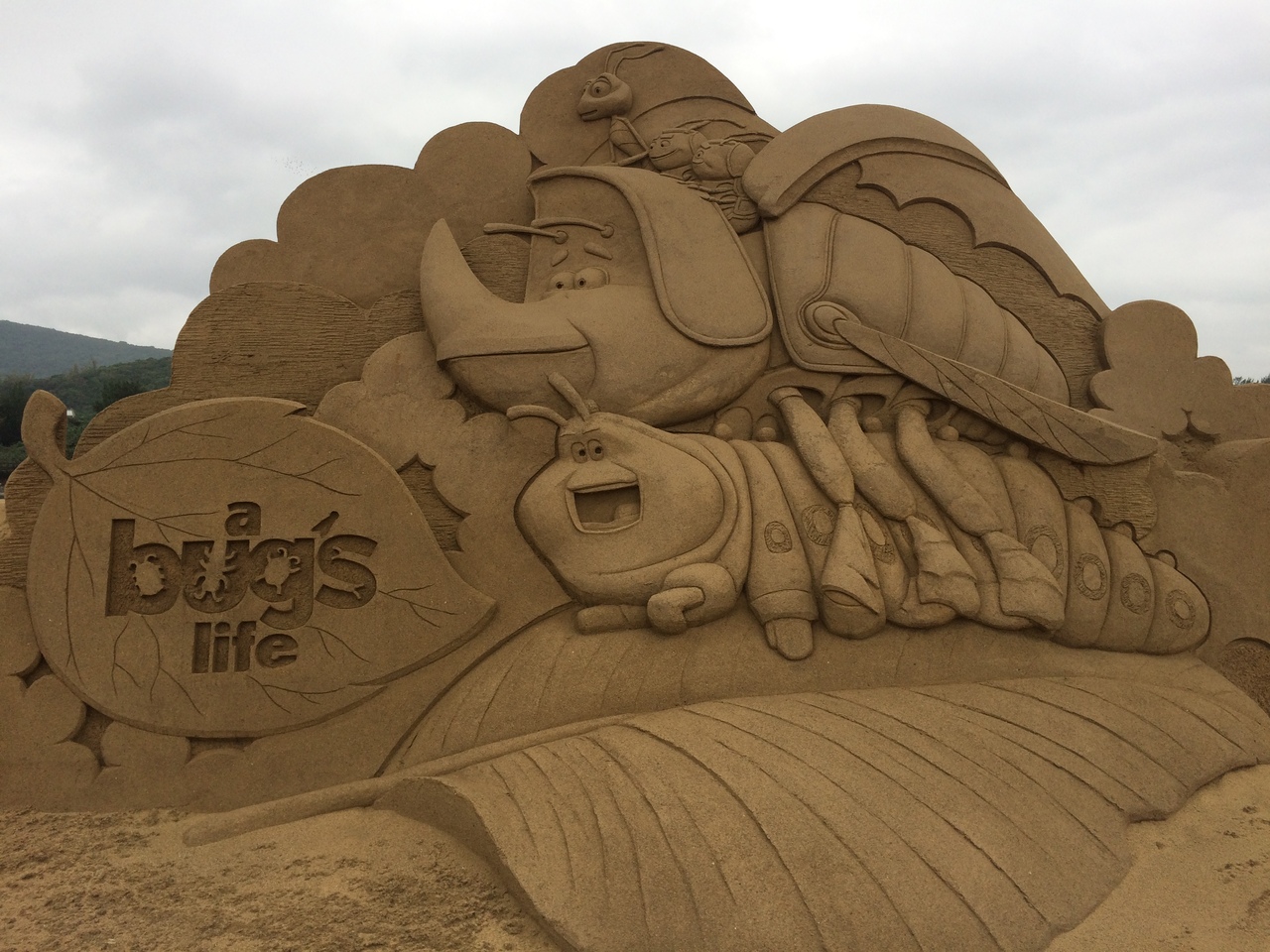 海水浴場ですが、泳いでいる人よりも砂場で遊んでいる人のほうが圧倒的に多いです。海藻はあまりありませんでしたが、木々の漂流がすごかったです。カニもいて、穴から出てきたり入ったりしていました。ピクサーの展示は有料でした