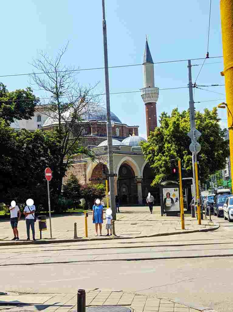 ライオン橋から、マリア・ルイザ通りを南へ行くと左にイスラム教のモスク、バーニャ バシ ジャーミアがあります。高いミナレットが目印です。右には中央ソフィア市場ホールがあります。