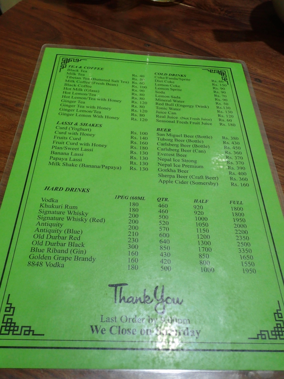 ネパール旅行最終日にガイドさんや旅行会社の方と夕食を食べに行きました。