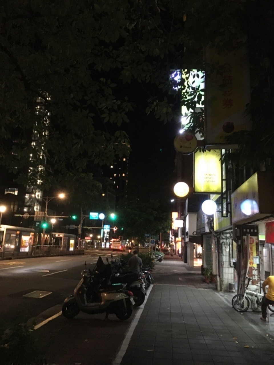 夜になると、比較的静かになる通りです。ビルにある1階のお店のほとんどが20時前には閉まっていて、シャッターもおりて静かな住宅街を通る道です。羅斯福路上にはMRTの駅の出口が何個かあります。台電大楼駅や公館駅などです。
