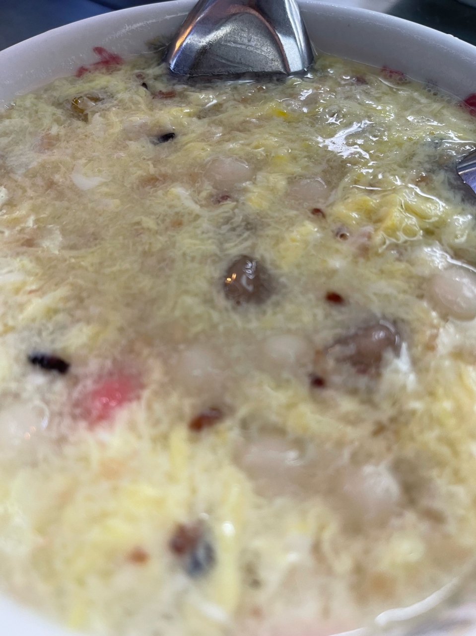 南機場夜市というネオンが新しくなり、バス停からも歩いてすぐのところにあります。コンビニはファミリーマートが付近に2件もありました。雨の日だったので、卵酒の入ったあたたまるデザートを食べました。60元くらいでした。