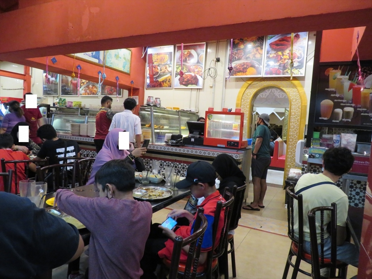 壁が無い造りのお店で、場所柄インド系のお客が多く、ワイワイガヤガヤ賑やかなのが特徴的。