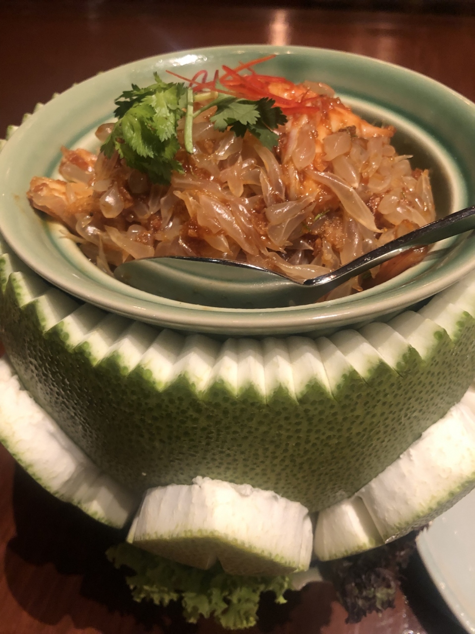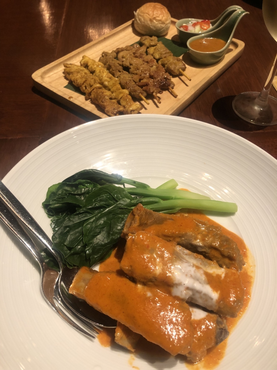 ロイヤルオーキッドシェラトン内にあるタイ料理のレストランです。前もってハングリーハブで3人前のコース料理を注文。レストランについてから、指定されたメニューの中から6つ選ぶという注文スタイルでした。3名分のノンアルコールがついて3674バーツのところ1750バーツで頂けました。ハングリーハブでの評価は5点満点中の4,8を獲得しておりまあまあの評価です。どの料理もおいしかったですが、カレー風味のスペアリブは辛すぎて食べられませんでした。