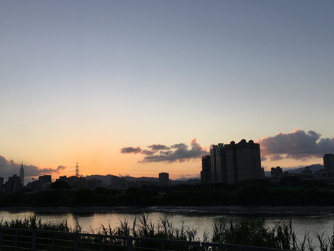 夏の間に何箇所か工事がされて、せっかく芝生だったところがコンクリートで埋められてしまって、残念に思いました。黄色いくちばしの黒い鳥や大きいサギみたいな白い鳥が川沿いの電柱に止まってさえずっていました。朝日が綺麗です。