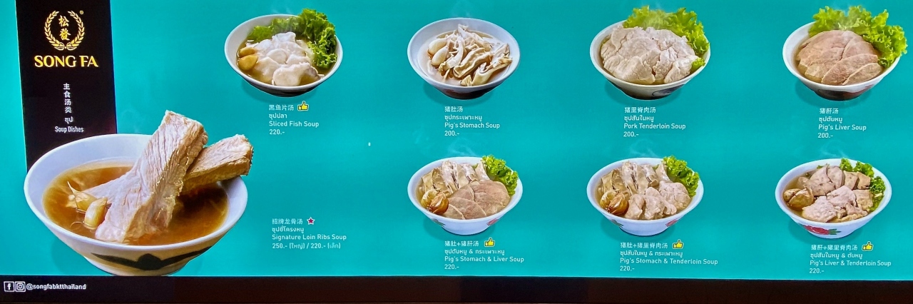 このお店は、1969年シンガポール創業の老舗:Song Fa(ソンファ)のバンコク支店。