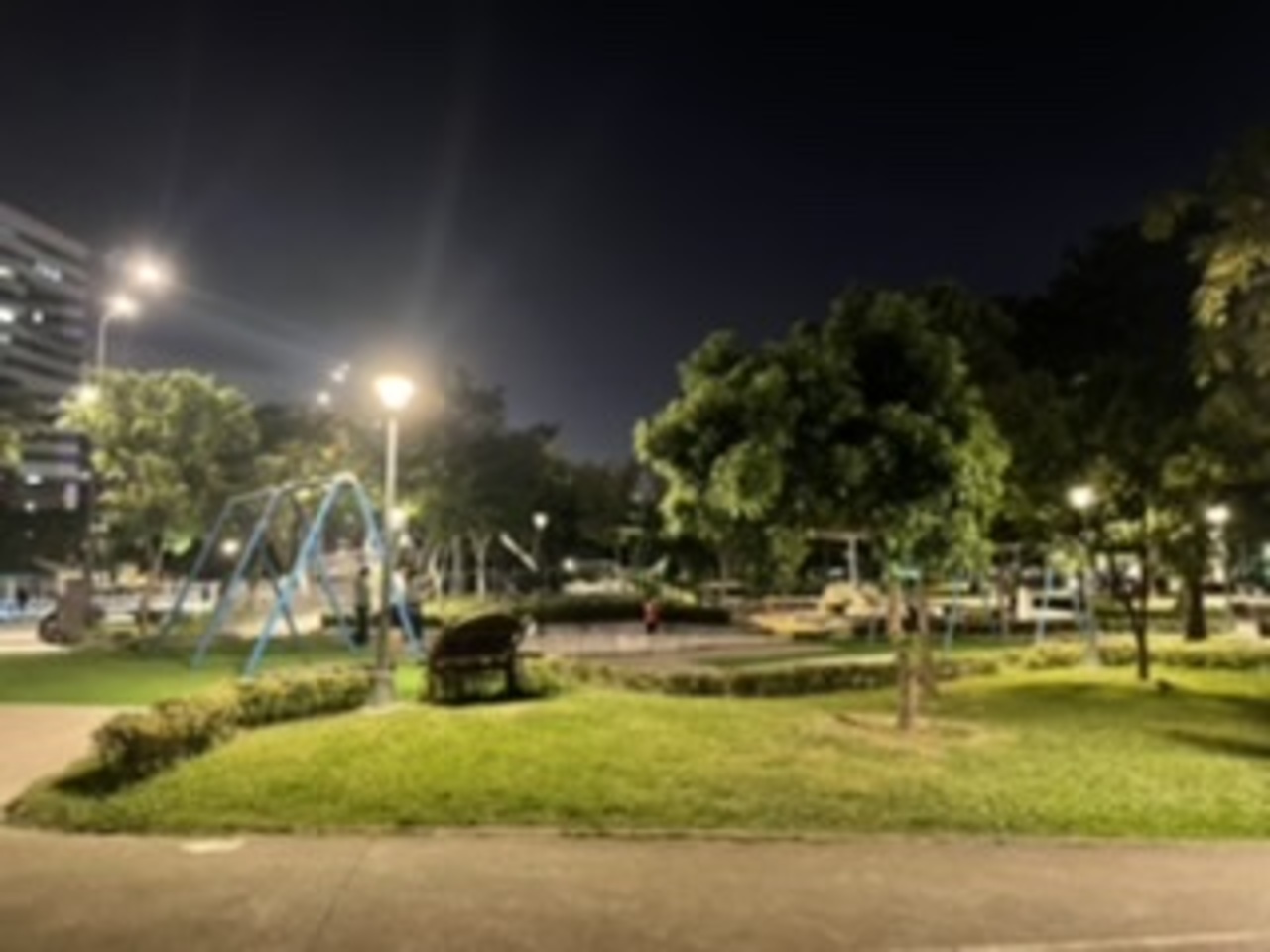 平ではなく、少し丘っぽく盛り上がっていて、球技などの遊びはしにくそうですが、ロープスライダーなどあり楽しいです。