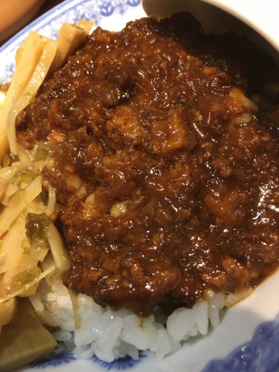 妻と夕食を食べに行きました。メニューに写真と日本語がありました。ちょっと甘いとろみのついた筍のスープなどを注文しました。ルーロウ飯の中に入っている筍もおいしかったです。とろっとした食感のエリンギも美味でした。