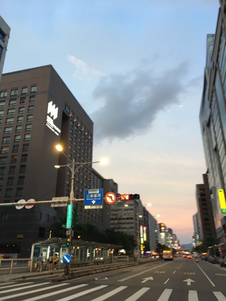 広い大通りです。バスレーンが真ん中にありました。南京東路はちょうど、太陽の東西と重なっているようで、夕日が沈んで行きました。カフェのチェーン店がいくつかあり、スターバックス、ブラウンコーヒーなどを見かけました。