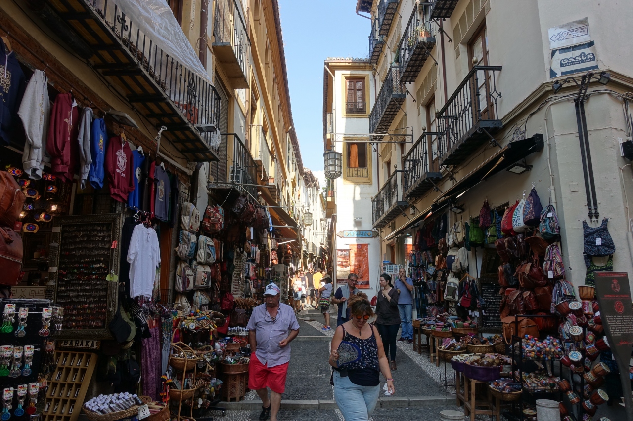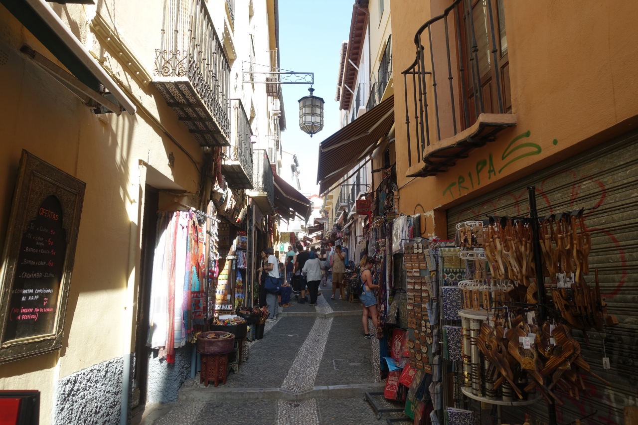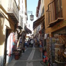 道の両側にアラブ系の土産物店や雑貨店が並んでいます。階段状に坂になっていて、車も入って来れないような狭くて短い通りですが、ここだけスペインではなくてモロッコとかにいる錯覚に陥るほど異国情緒に浸ることができました。