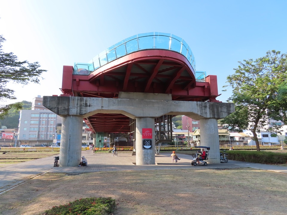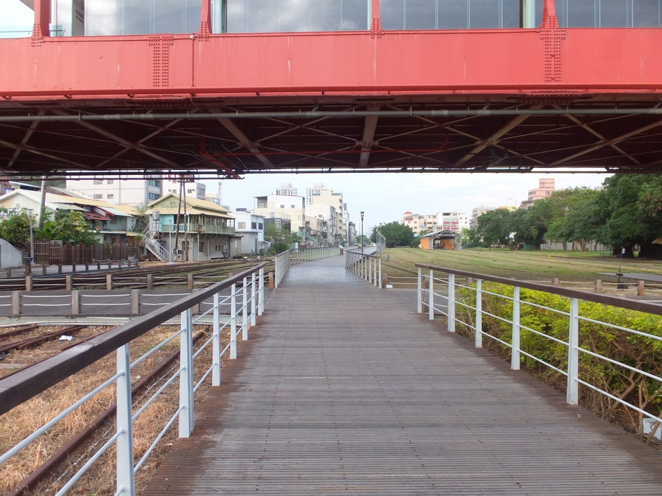 哈瑪星鉄道文化園区にある赤色の派手な歩道橋で、過去の遺物となった感は否めませんが、かつては、鼓山と鹽埕を結ぶ交通路だったようです。
