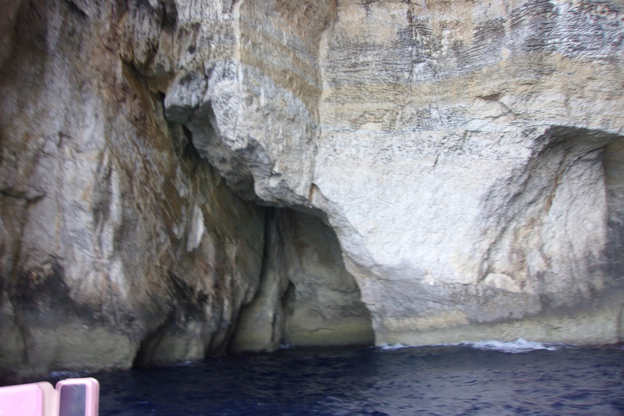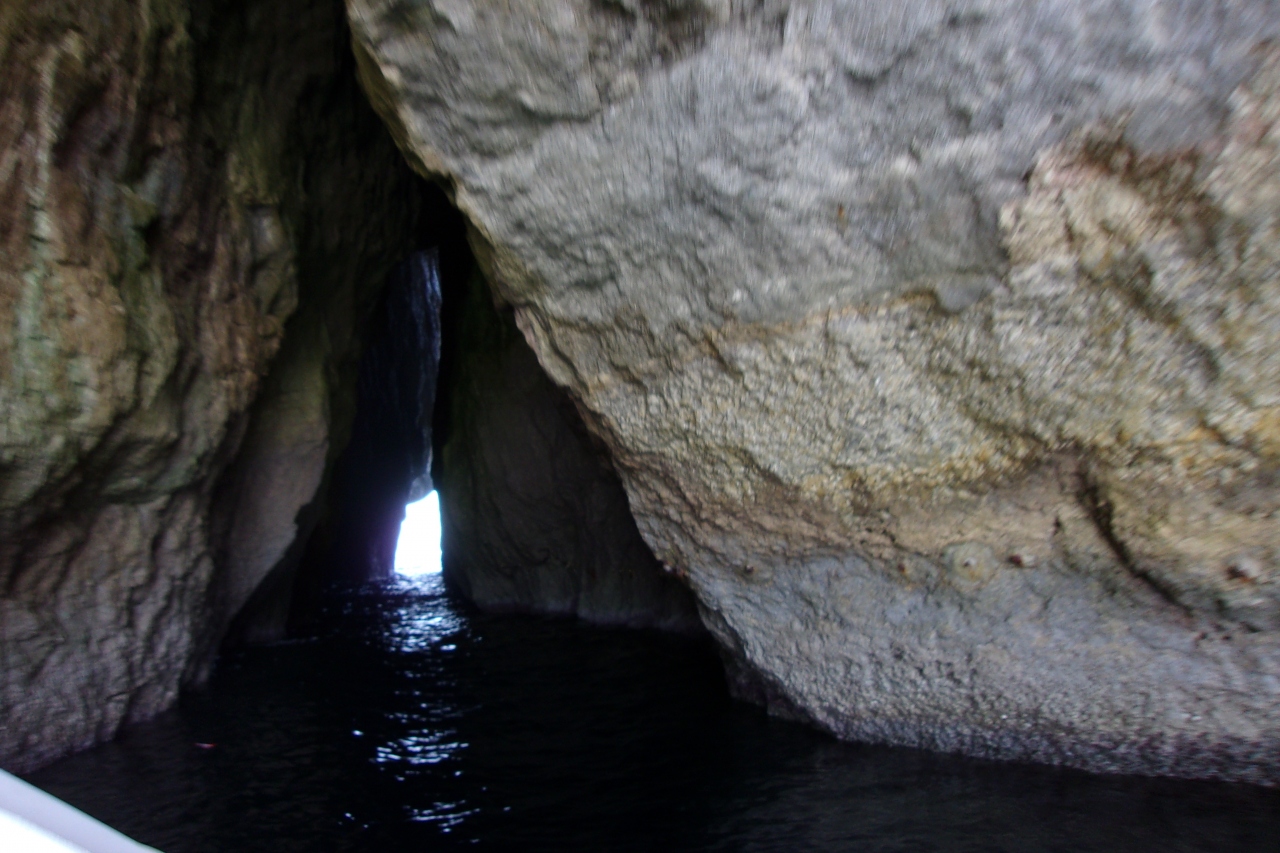 ボートは通り抜けられるのかなと思う細い洞門を抜け、広い海に出ます。海岸線にそって、洞窟などを眺めながら、スリル満点のひとときです。5年ほど前に風化して崩れてしまったアズールウィンドウは、あのあたりだよと船頭さんが教えてくれました。