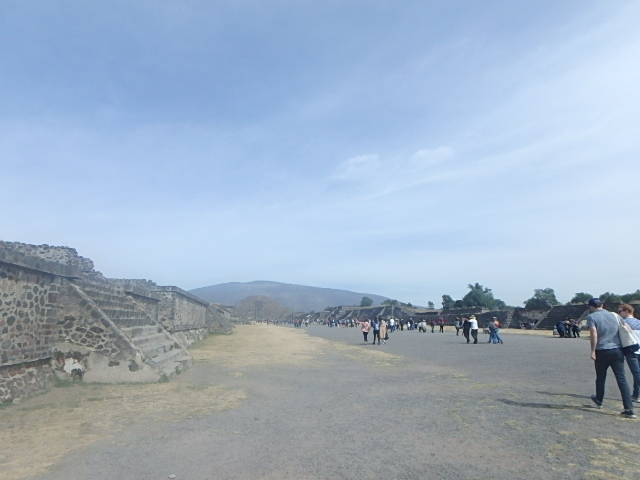 テオティワカン遺跡の中にある太陽のピラミッドなどから月のピラミッドまでの道までを結ぶテオティワカン遺跡のメイン道路です。太陽のピラミッドなどから月のピラミッドまでは500メートルくらいあり、太陽のピラミッドの近くから月のピラミッドを見るとかなり遠くに見えました。