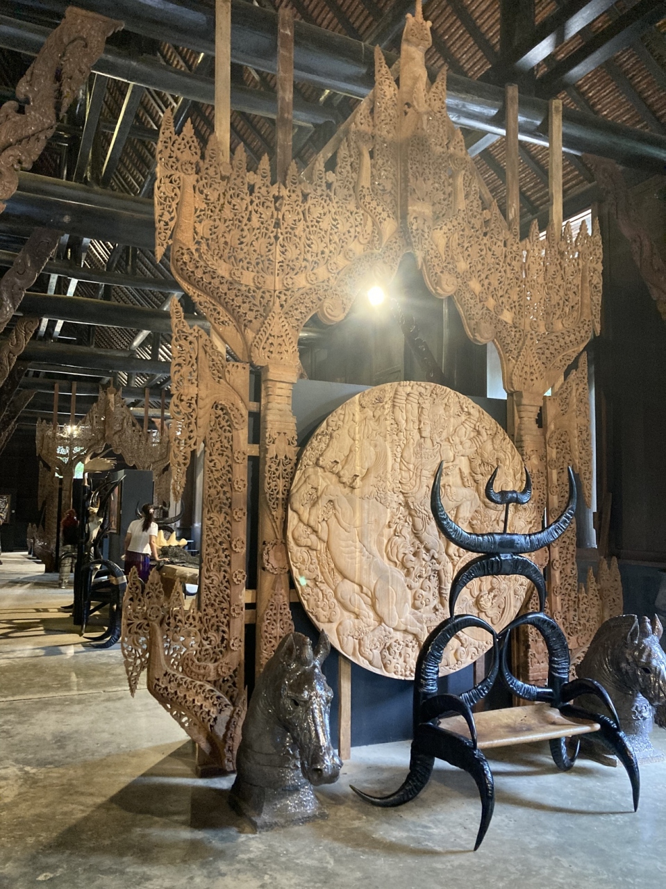 チェンライの白のお寺、青のお寺、緑のお寺、と並んで有名な黒の家です。歴史はなく、芸術家の方が作ったそうで、不思議な置き物や展示物がありました。好きな人には見応えがあるかもしれませんが、時間に余裕がなければあえて行かなくてもいいような気もします。入場料は80Bです。