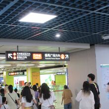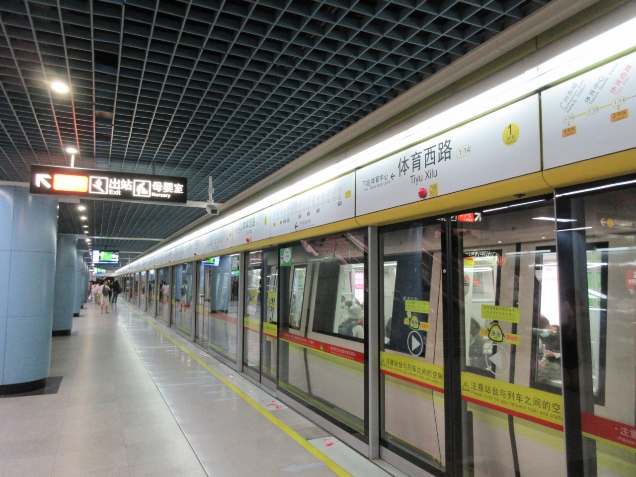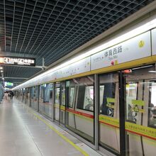 地下鉄1号線と3号線の乗換駅となっており、広州市内から空港に向かう際に利用しました。1号線が黄色、3号線がオレンジ色がイメージカラーのため、最初は乗り換え時に少し戸惑いました。特に3号線は空港に向かう路線と、天河客運輸駅に向かい路線、さらに番YU広場に向かう路線と、合わせて3路線が交差するので、ホームが二層になっており注意が必要です。また、大型の駅であるため、構内には香港アパレルブランドGIORDANOのエキナカ店などがあって特徴的でした。