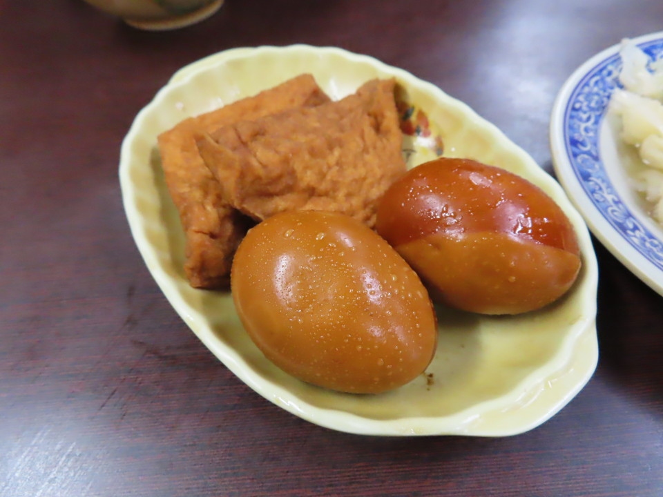私と息子は魯肉飯、息子の嫁と孫は肉燥飯をシェア、煮卵とガンモドキ、野菜炒めを注文、妻は食欲がないから、少しづつ摘まんでいました。