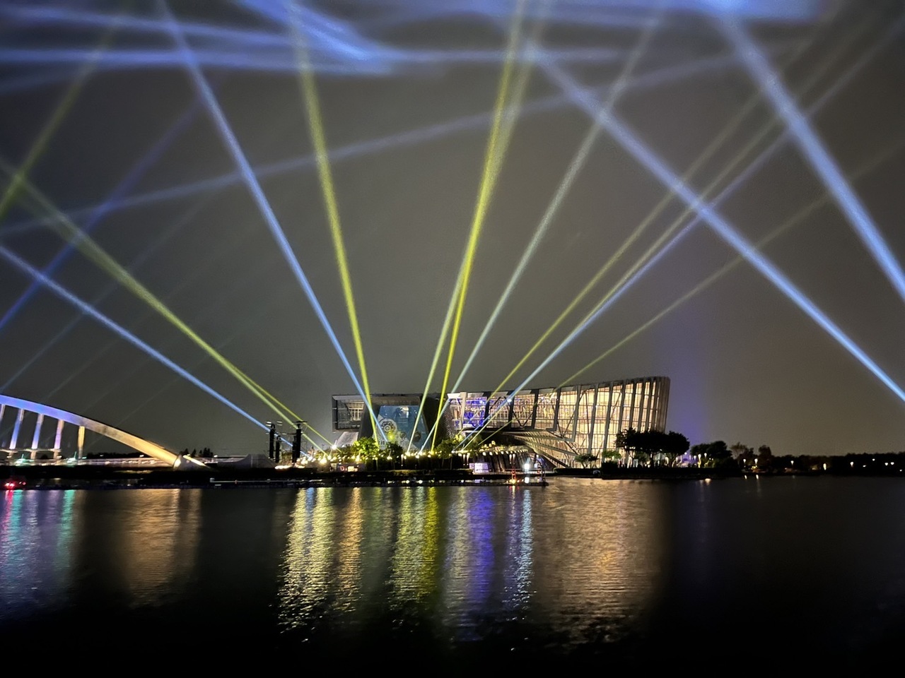 外から敷地に入ってくると、大きな公園のようになっていて、アートもあり、池もあり、魚も泳いでいて圧巻でした。光のイルミネーションショーを開催していたので、音楽に合わせて噴水とイルミネーションのショーが面白かったです。