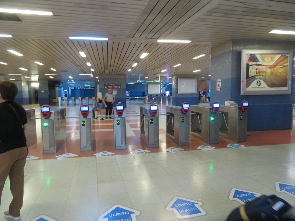 9月初めにアンカラ空港から空港バスで市内中央部のKizilay駅で下車。ホテルのあるMaltepe 駅まで地下鉄で移動。翌日朝はMaltepe駅からバスターミナルのあるAsti駅まで地下鉄で行きました。Asti駅からは外に出ることなく歩く歩道でターミナルに行けました。大きなバックを持っての移動を心配しましたが、朝ラッシュ時であるにも関わらずそれほど混んでなく、運よく座ることも出来ました。Kizilay駅の窓口でアンカラカードを6リラ(120円)で購入(一人一回乗車で2,5リラ)。Maltepe駅では一回券を自動販売機では買えずに困っていたら、後ろで待っていた青年のアンカラカードで購入してくれたので、20リラ紙幣を渡したら、10リラ返却してくれました(二人分は14リラのところ)。青年の親切で無事チケットを購入できましたが、後日アンタルヤでも同じようなことがあったので、機械が急激なインフレに対応できないことが起きていると思われます。チャージは損を承知で大目にすることと小さな紙幣を用意することが必要かと思います。