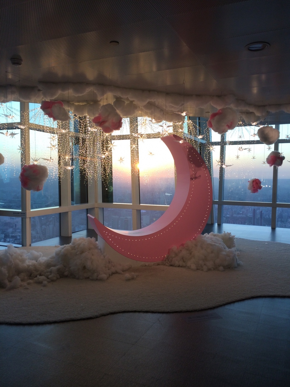 有名ブランドショップは、ほとんど入っています。免税もできます。スターバックスもコンビニもありました。展望台にあがるのにエレベーターを利用しますが、エレベーターが急速に速度をあげていくので、パネルを見ていると面白かったです