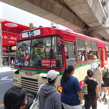 バンコク市内の移動には主にBTSとMRTを利用してきましたが,バスなら駅から少し歩くところでも行けるので,今回試しに利用してみました。