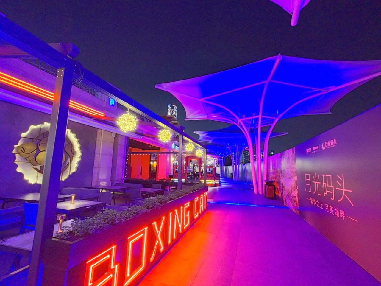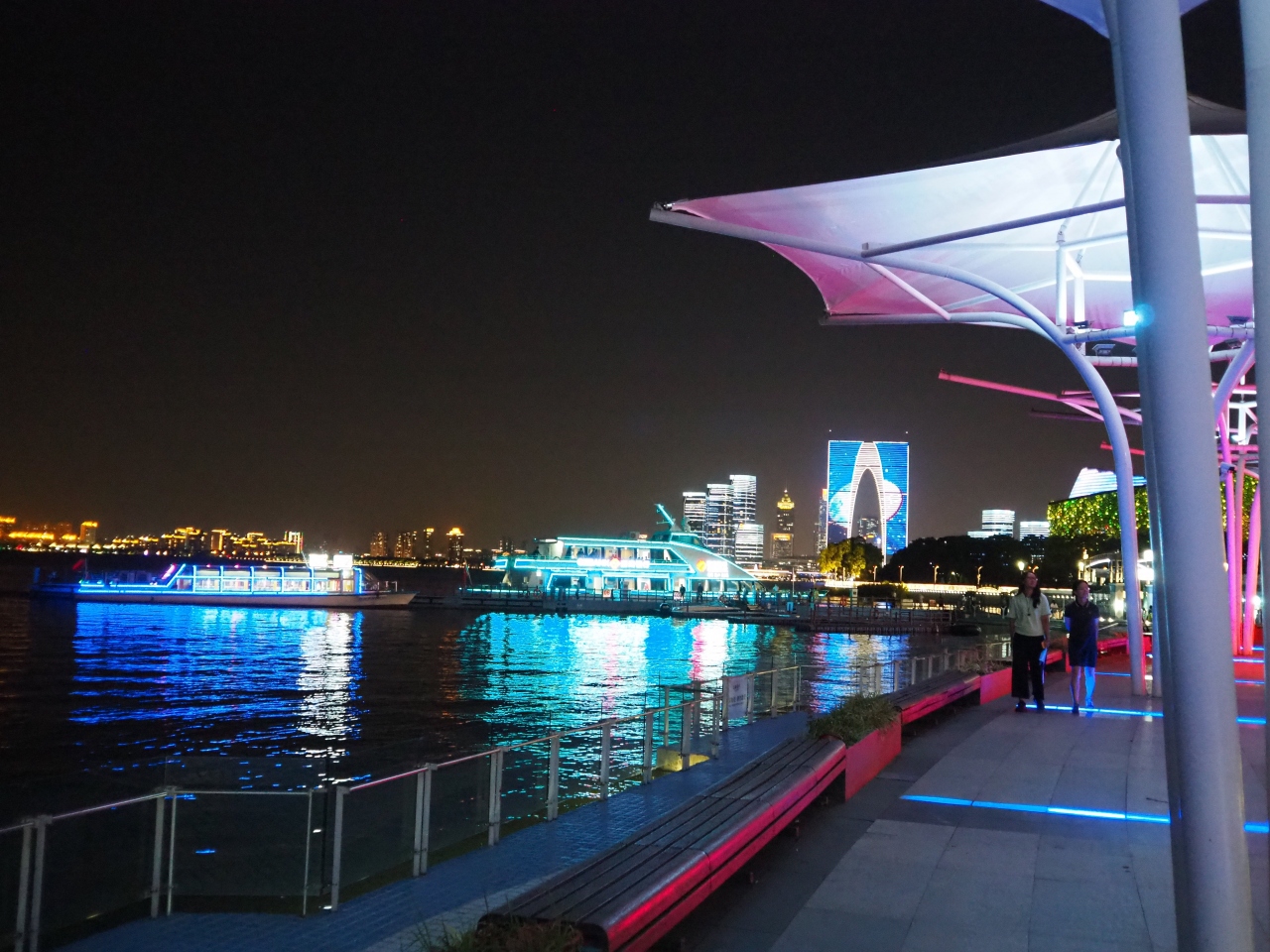 湖沿いにある夜も美しい埠頭