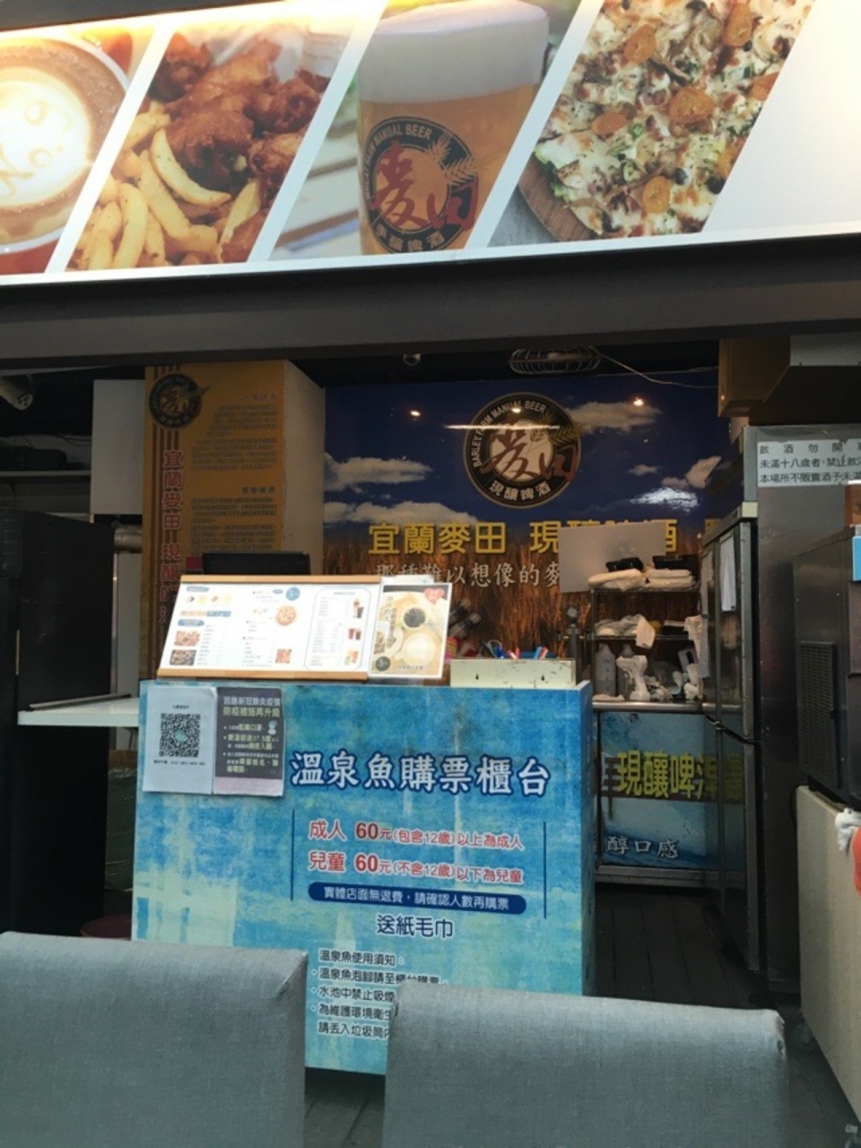 足湯が無料でできる温泉公園の中にありました。屋根があるので、雨の日でも安心して利用できました。スタッフは1人しかいませんでした。ちょっと頼りない感じの方でしたが、無事にビールが買えたので満足でした。メニューには写真があります