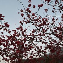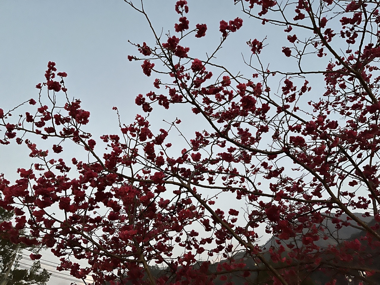 屋外にもかかわらず、台湾ではコロナ対策で屋外もずっとマスク着用が法律で決められていたので、訪れる人は皆、マスクをしていました。何が楽しくてマスクをつけたまま桜を見なきゃいけないのかと思いましたが、赤い桜に癒されました。