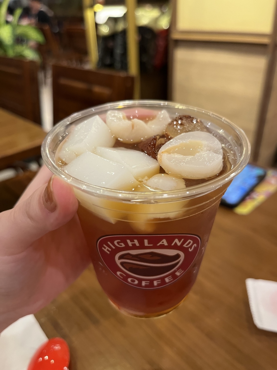 コーヒーでなくライチとゼリーがトッピングされた紅茶を頼みましたが、すっきりとして美味しかった。