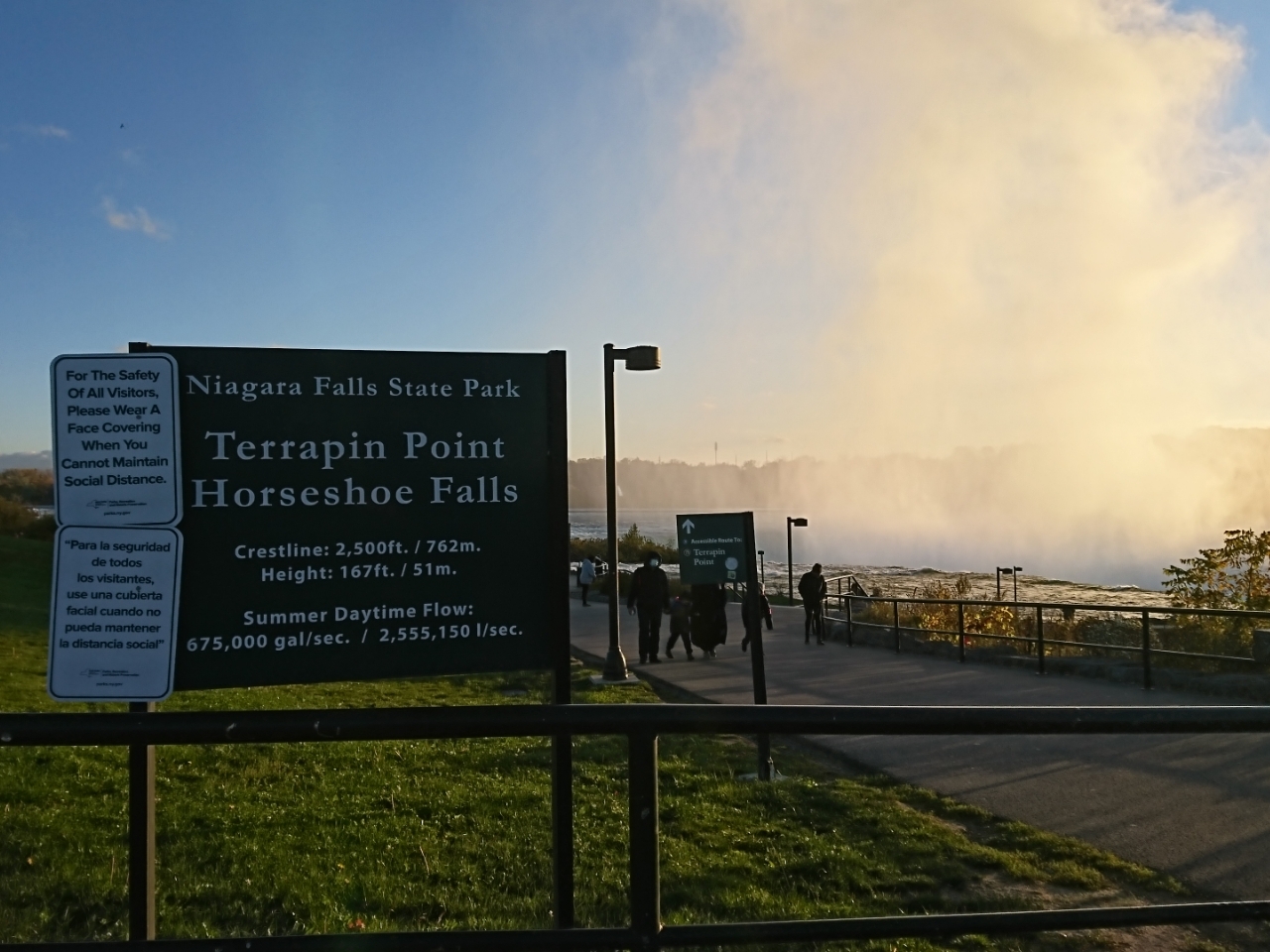 ゴート島(アメリカ側)にあるビューポイントです。ここからはカナダ滝やカナダ側の町を見渡せます。けっこう近くで滝を見られるので、迫力がすごいです。滝は夜にライトアップされたので、それもとてもきれいでした。