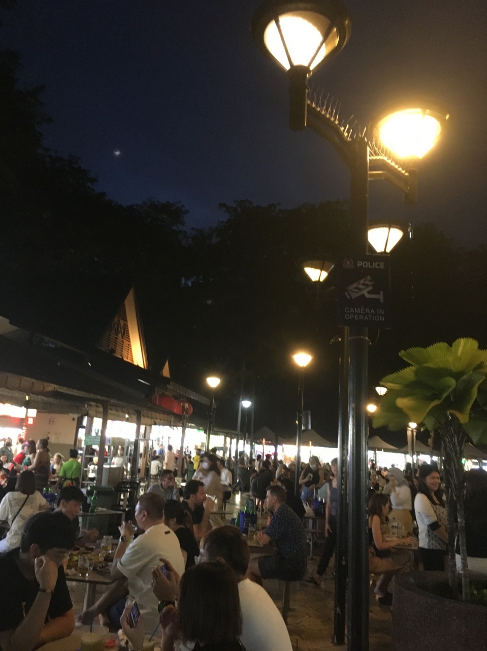 リトルインディアから歩いてシティホールに向かっていたはずが気づけば逆に進んでいたようでたまたまこちらのホーカーズに辿り着きました。金曜日の19時ごろでなおかつ駅から道路挟んで隣にありマンション密集地の中という立地もあり大盛況でした。