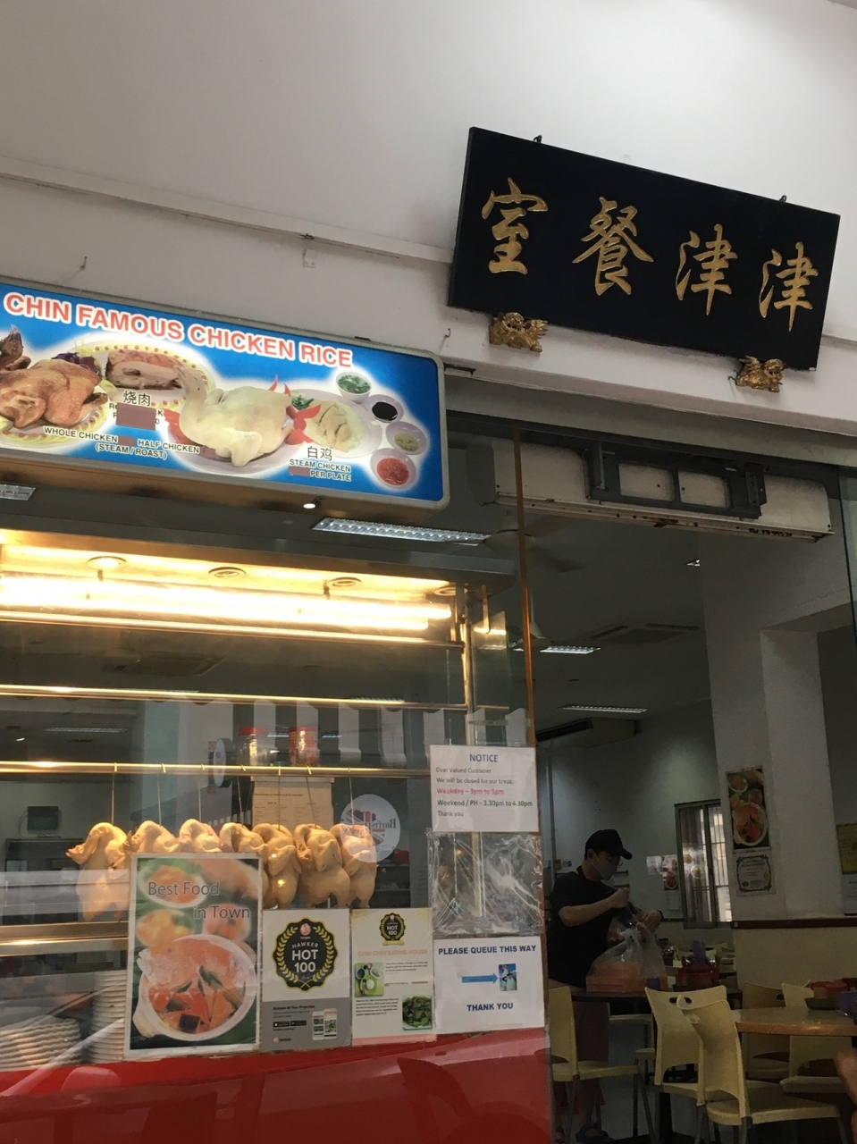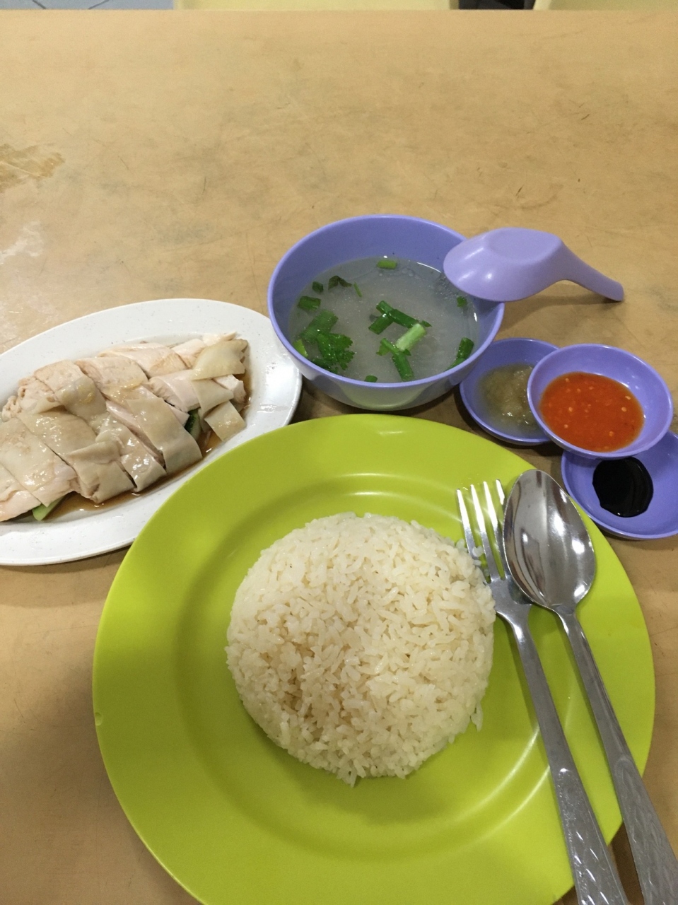 2軒隣にある有名なカヤトーストのお店、喜園珈琲店に行った際に現地のシンガポール人にこちらのお店のチキンライスが絶品と教わり最終日17時の開店に行きました。店先には鳥が吊るしてあります。1人なのでハーフサイズ(5ドル)を注文したら30秒で出てきました!チキンは柔らかくしっとりしていて最高に美味しかったです。