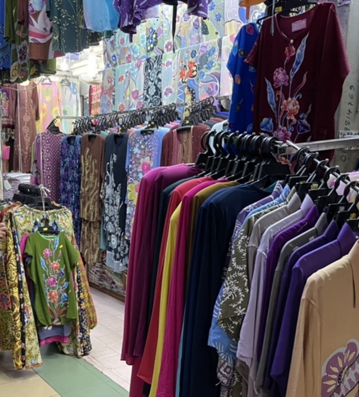 マレー系の方の着るお洋服カラフルなのがたくさん売っていて、見ていてたのしかったです。