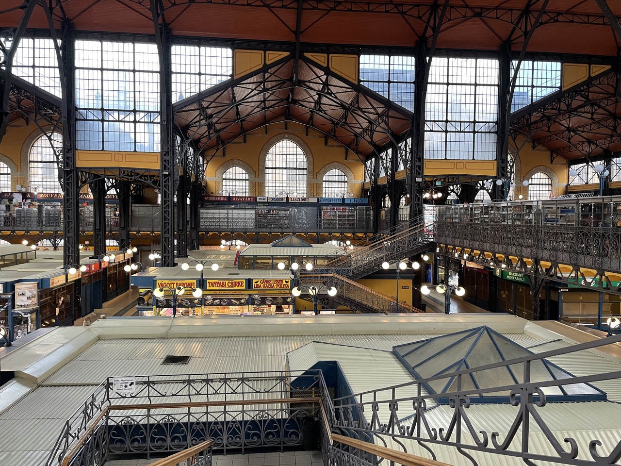 室内市場なので、雨が降っても安心して観光ができました。一階が食べ物、二階がお土産となっています。