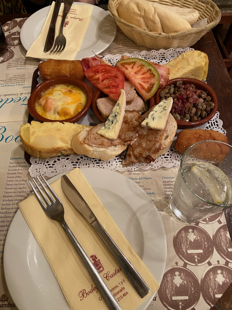 19時過ぎに来店。4組ほど待っていましたが、20分もしたら席につけました。道すがら見たタパスの盛り合わせに惹かれて入ったので、迷わずそちらを。あたたかいものと冷たいものを選べます。