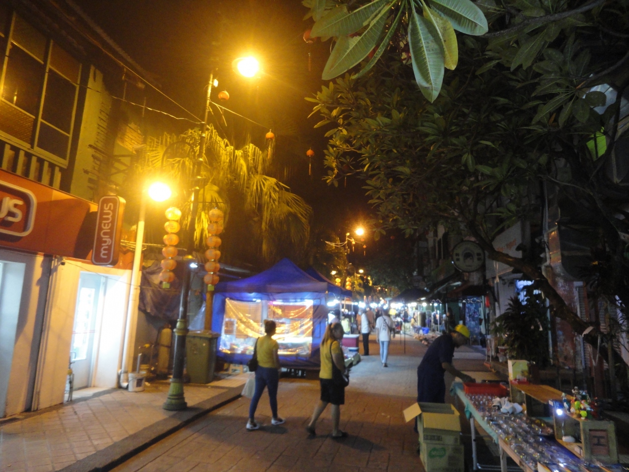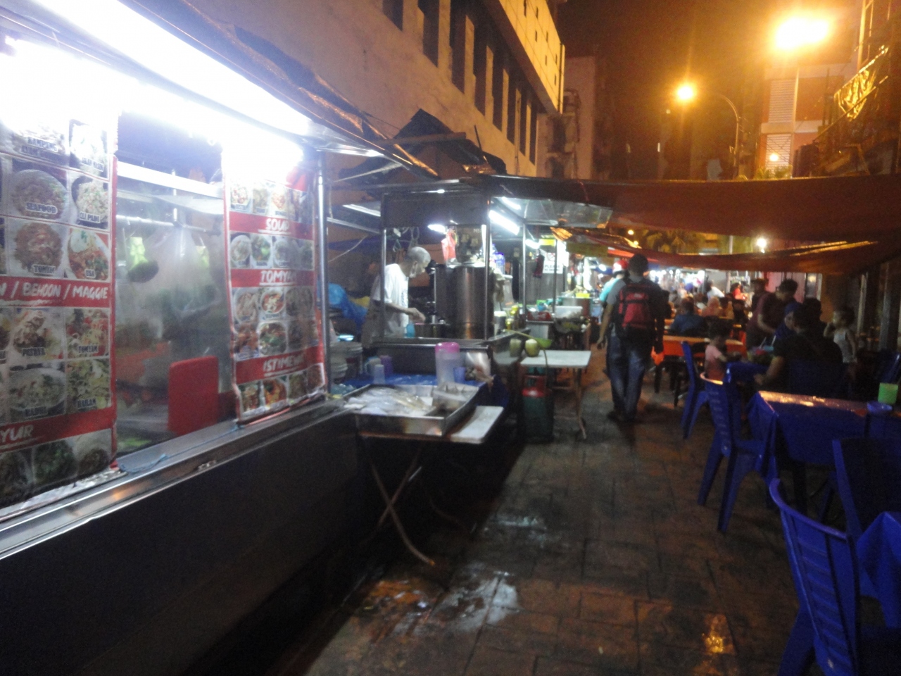 ジョホールバルの中心部では、いくつかのエリアでナイトマーケットが開かれていました。ヒンドゥー教寺院の前の通りは昼間からお店が並んでいましたが、夜も灯りを点けて営業していて、夜の方が活気がありました。陳旭年通りでも、夜は雑貨などを売るお店が通りに出ていました。ただ、いずれも食べ歩きできるようなものを売る屋台をほとんど見かけなかった点は残念でした。シティ・スクエアのすぐ南側の路地に入ってみたら、ナイトマーケットとは違うのかもしれませんが、食べ物屋台が並ぶ路地も見つかって、そこで食べることが出来て良かったです。
