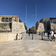 ヴァレッタ要塞に入る入口です。スリーマからフェリーでヴァレッタに移動したので、逆にこの門から要塞の外に出ました。バスで移動して来たら、この門から入ることになると思います。要塞は堀のようなものがあるので、この門で外敵から守っていたのでしょう。