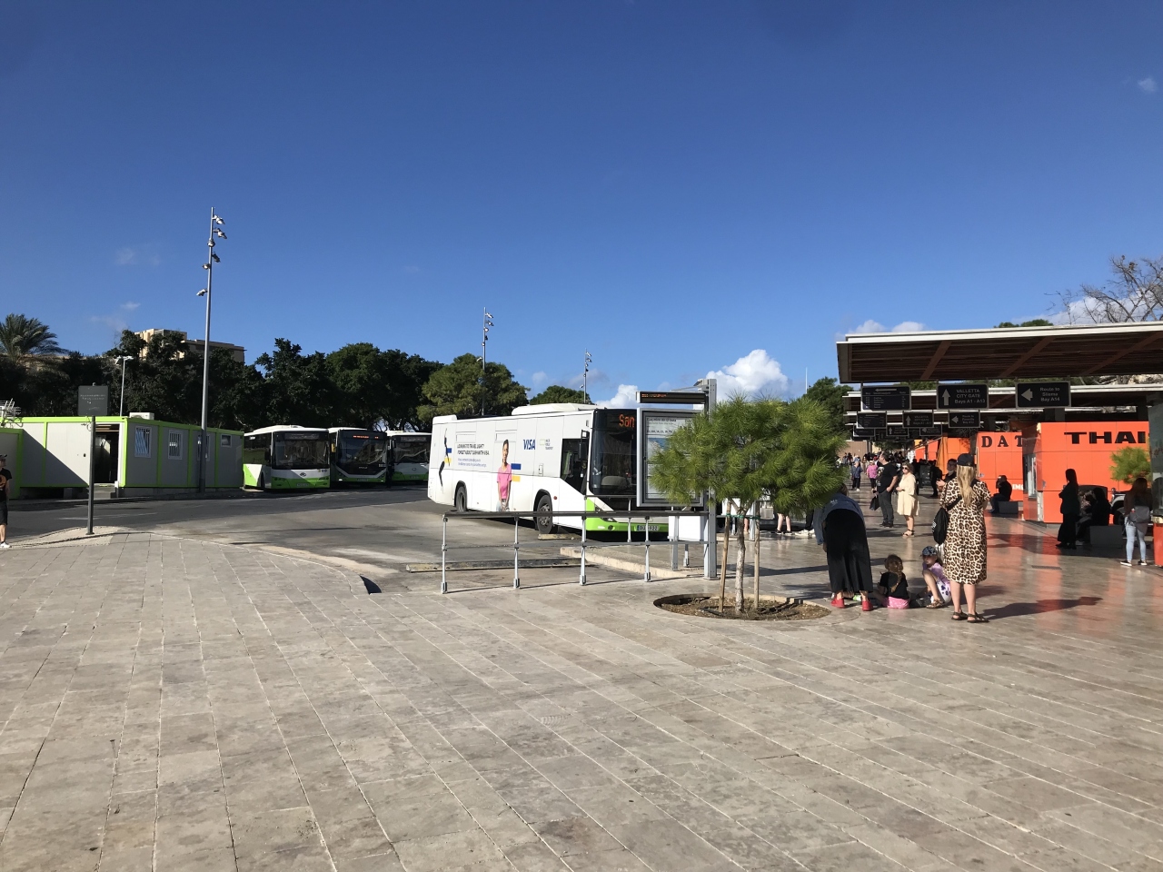 ヴァレッタのシティゲートから旧市街から外に出て、トリトンファウンテンを通り過ぎるとバレッタのバスのメインステーションがありました。空港からスリーマへは直接バス、スリーマからヴァレッタまではフェリーだったので、初めての利用でした。空港からヴァレッタに来れば。ここでバスを降りすことになります。私はここからイムジーナ行きのバスに乗りました。