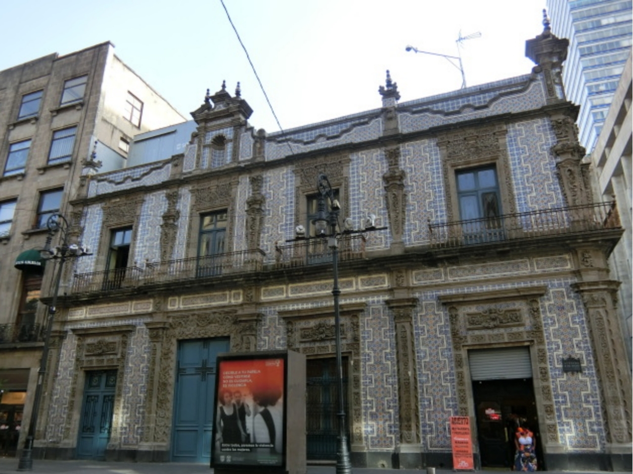 壁一面にタイルが張ってある建物です。タイルのデザインは青と白がメインで上品な雰囲気でした。写真スポットになっているようで、周辺にはたくさんの観光客がいました。タイル貼りではありませんが、ターコイズブルーのドアやその周りの彫刻も素敵でした。