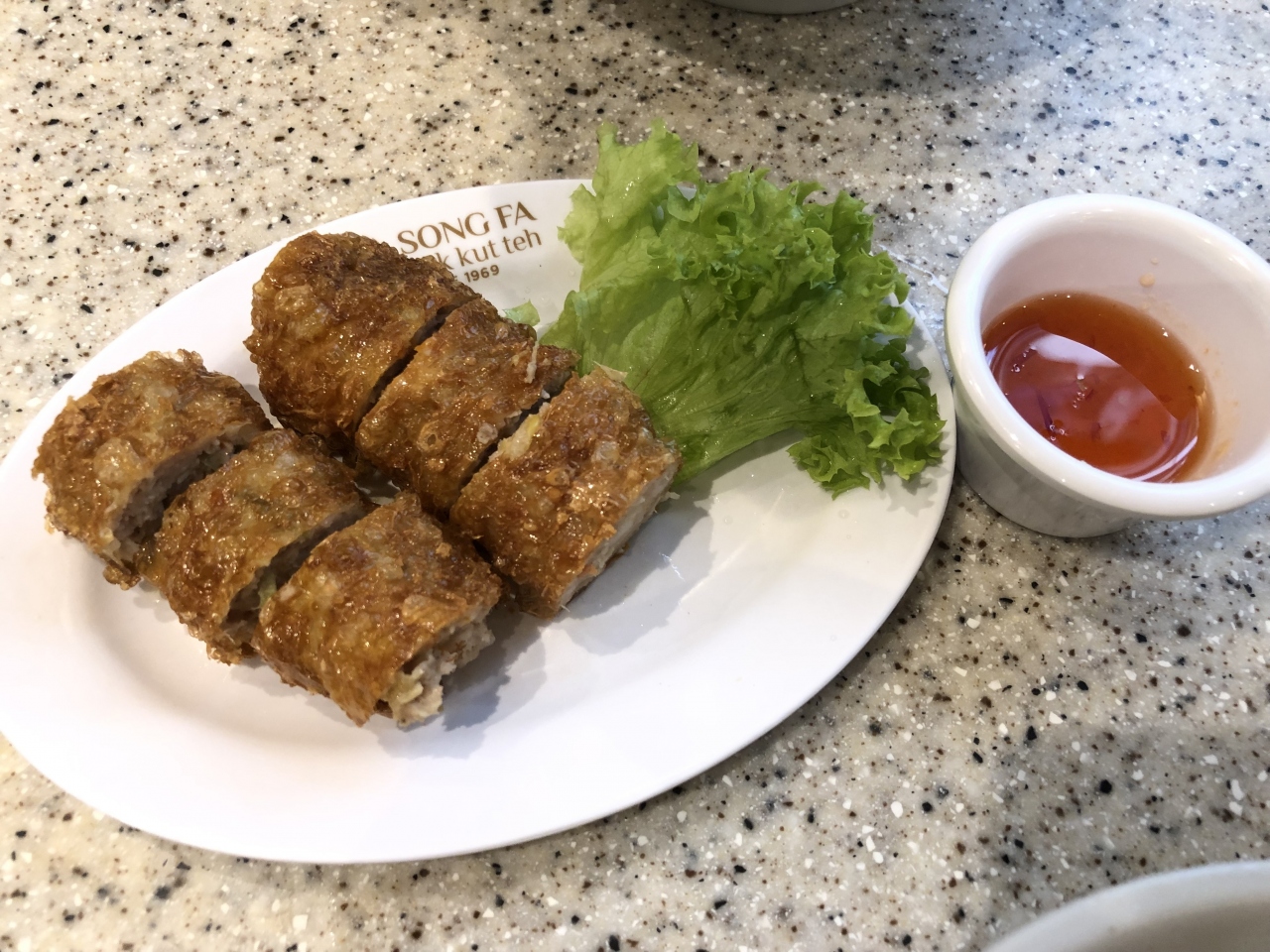 豆苗の炒め物、バクテーやレバースープ、スープに合わせてそれぞれお素麵のような細い麺のミースアをオーダー。あと、大好きなニョヒョンも頼みました。ニョヒョンはプラナカン料理で豚のひき肉などの具材を湯葉で巻いて揚げたものです。お腹いっぱいいただいて、トータル約38シンガポールドル。レストランでの食事代がお高いシンガポールにおいてはコスパも良いです。