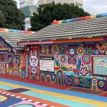 この彩虹眷村を描いたおじいちゃんは、かなりカラフルが好きなようでした。パステルやモノクロなどではなく、はっきりした原色で、色が塗られていました。売店で、アイスクリームが売っていました。アイスクリームも原色のレインボーでした。