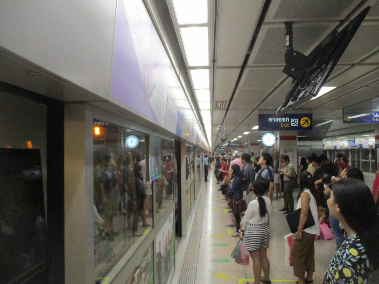 駅の上り・下り両ホームの進行方向後方部に警備員が配置されています。ファランポーン駅はガラス張りの安全柵が設置されていますが、彼らを配置しており安全運行を管理しています。少しでもガラスに近づくと笛を鳴らし注意してきます。地下鉄が到着する前の待機時間はフレンドリーに話をしている警備員もいます。
