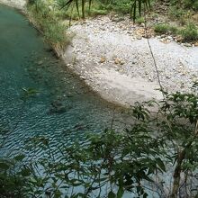 天気がよかった日なので、食べ物を持っていけば、川沿いの急斜面ではない穏やかなところで、足を川につけて遊んだり、シートをひいてピクニックにも向いています。実際に家族連れがそうしていました。ターコイズブルーの水でした。