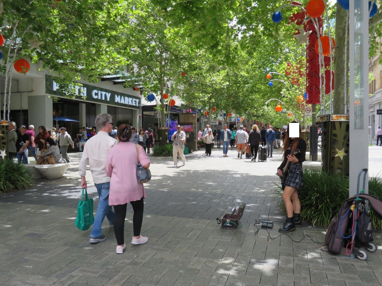 マレー・ストリートは、パースの中心部を東西に貫いている目抜き通りの一つで、その内、パース駅近くの200~300mほどが歩行者専用のマレー・ストリート・モールになっています。