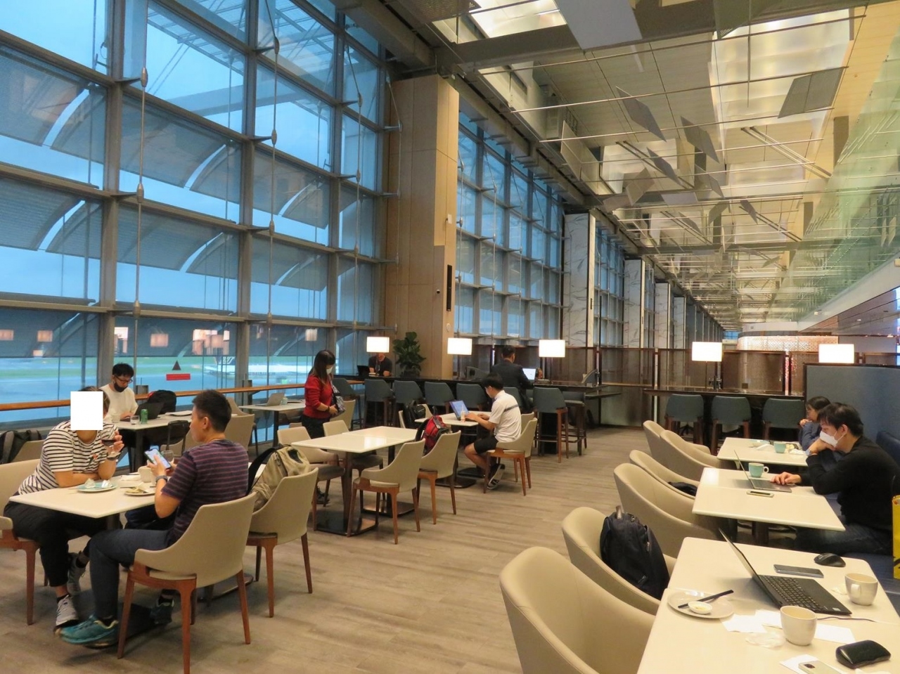 - 工事後の新ラウンジは広くなったおかげで、多少人が増えても混み合った感じ無し。