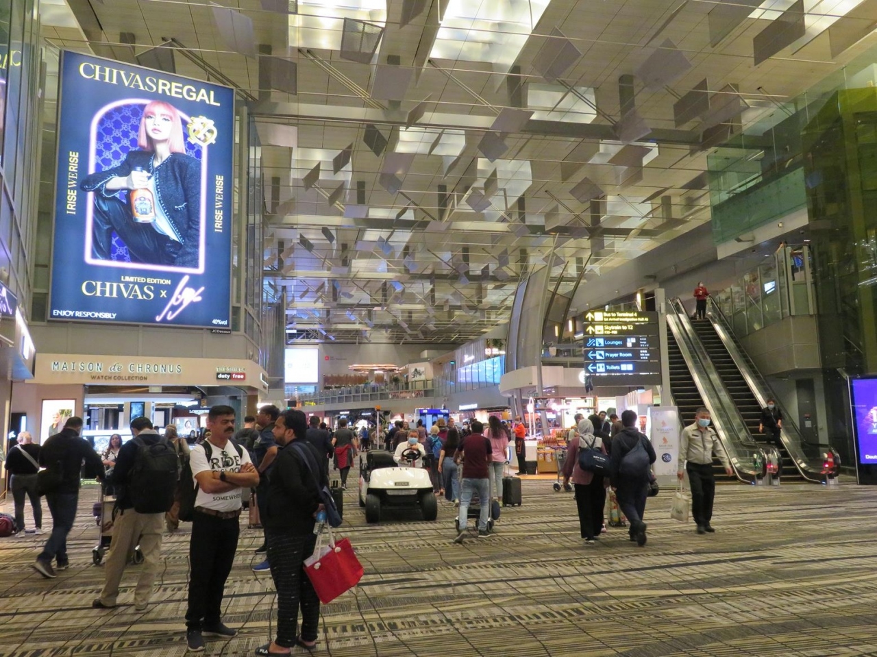 チャンギ国際空港ターミナル3のクリスフライヤーゴールドラウンジがあるのは、イミグレーションを出て左に曲がるとすぐ目に入るエスカレーターを使った上階通路。