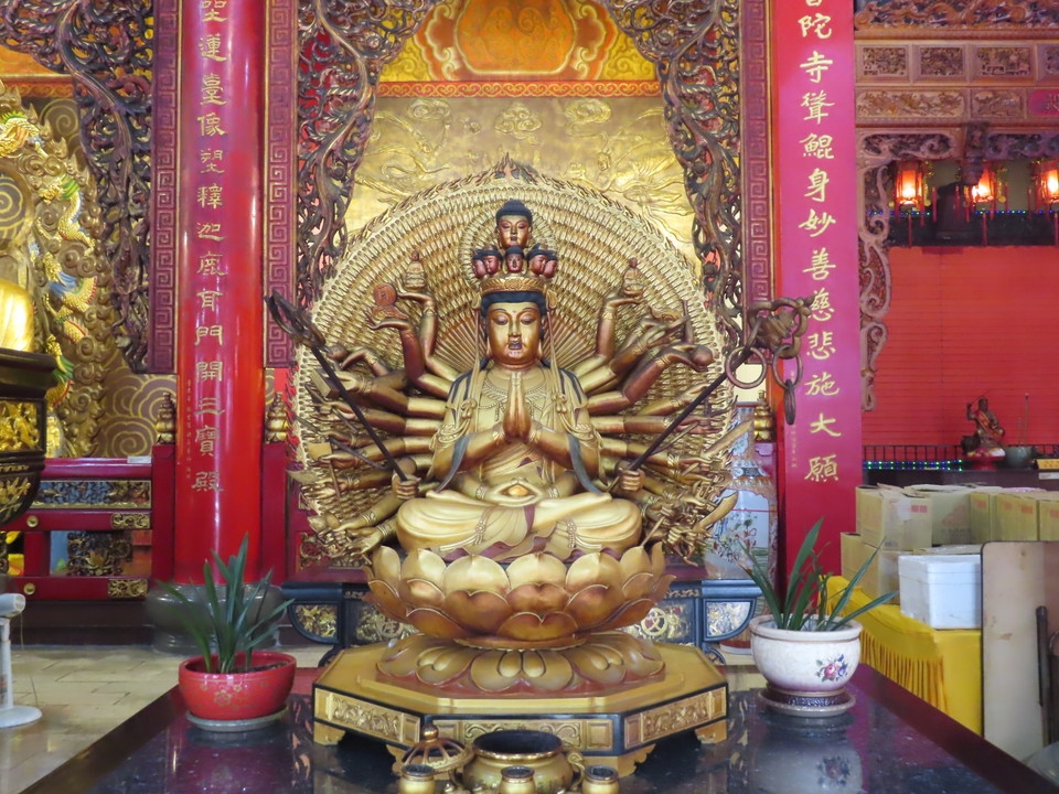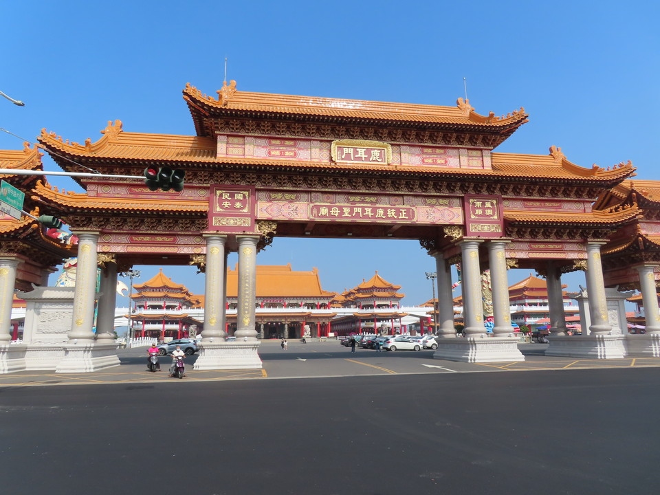 巨大な山門:鹿耳門を潜ると正面に黄色(実際は黄色ではありません)の屋根を持つ壮観な本殿と両側に相似形の建物が建てられており、両脇には、高さ21mの巨大な千里眼,順風耳の像が建てられていました。